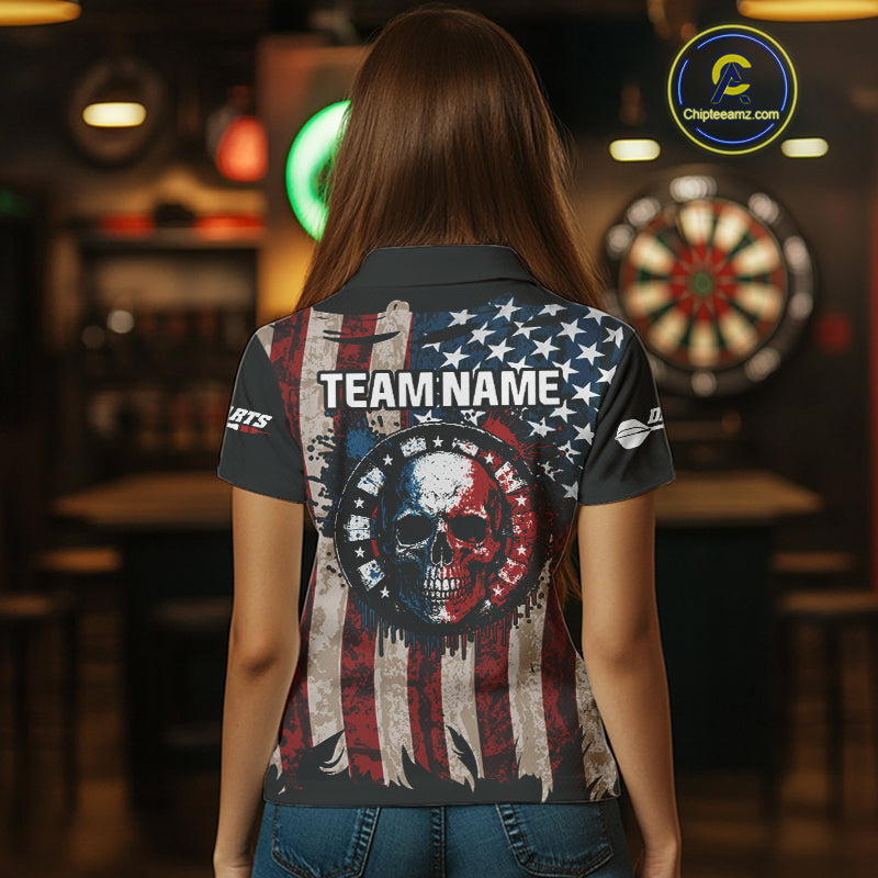 Colorful Skull Grunge Dartboard US Flag Dart Women Polo Shirt, Patriotic Dart Jerseys NYN1556
