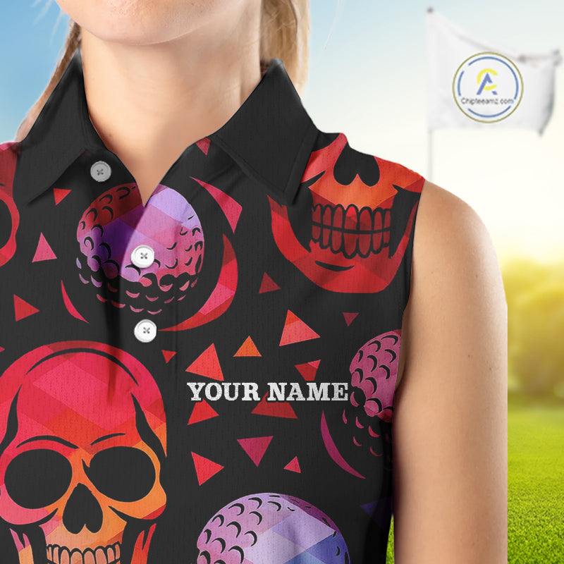 Red Gradient Skull Golf Ball pattern Sleeveless polo golf shirts Custom Halloween golf top for ladies NQS10511