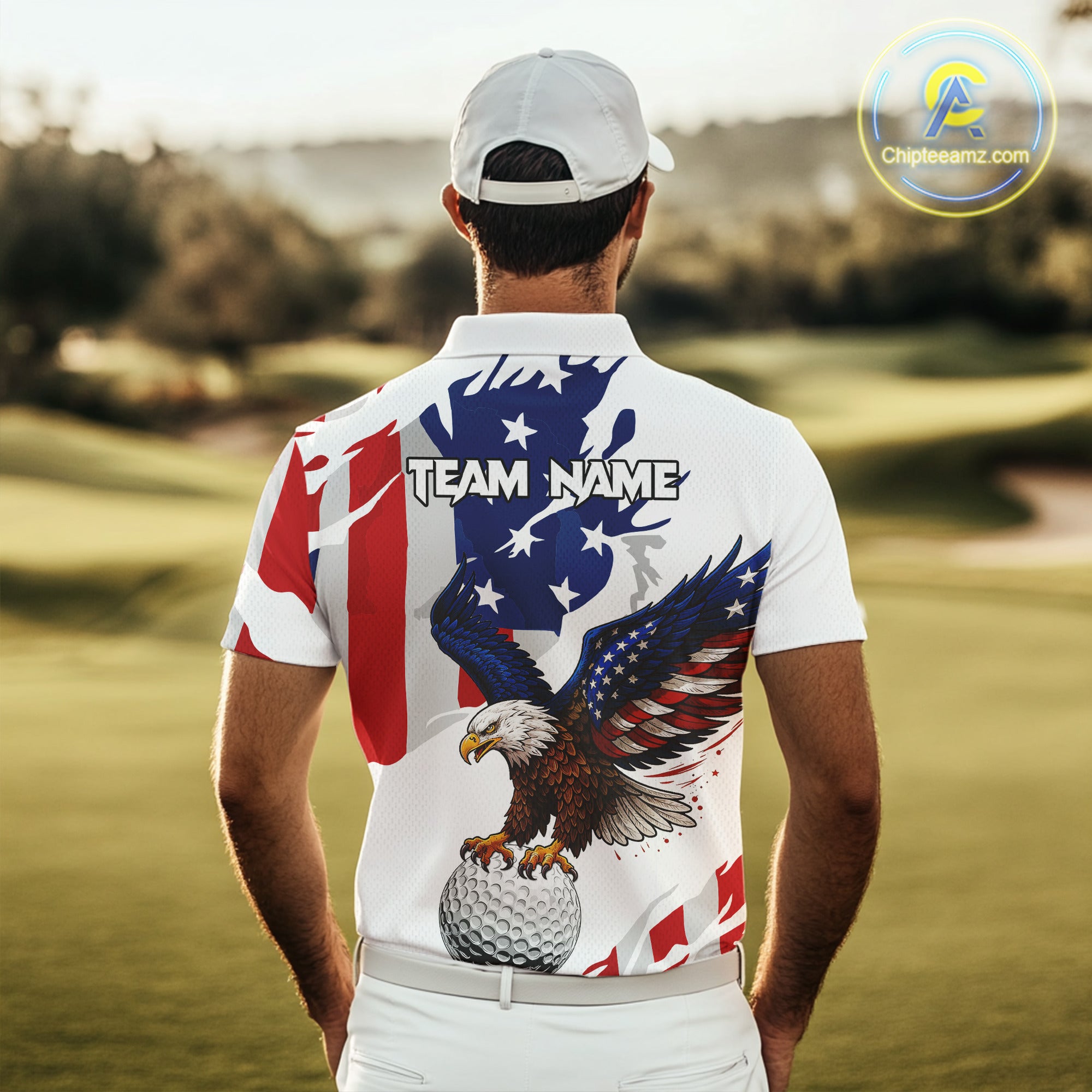 Red, White and Blue American Flag Eagle Mens Golf Polo Shirts Custom Patriotic Golf attire For Men NQS10640
