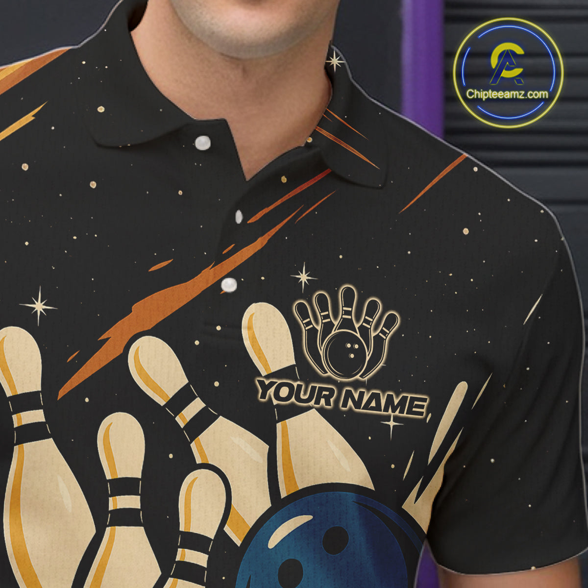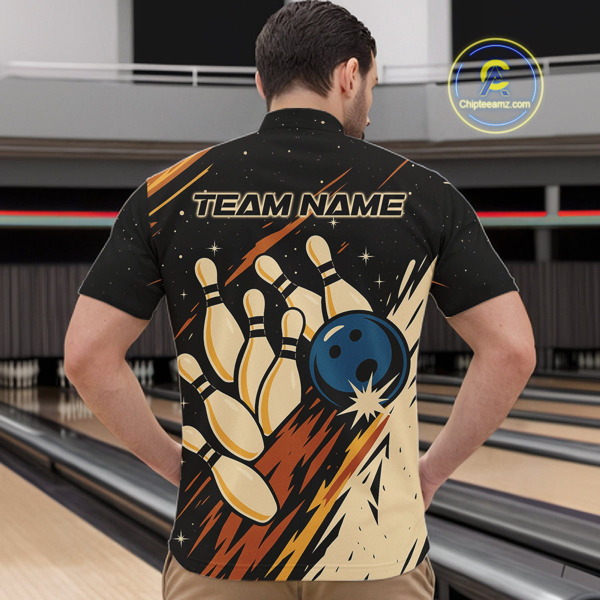Retro Black galaxy Mens Bowling Polo, Quarter Zip shirts custom vintage bowling team league jerseys NQS10547
