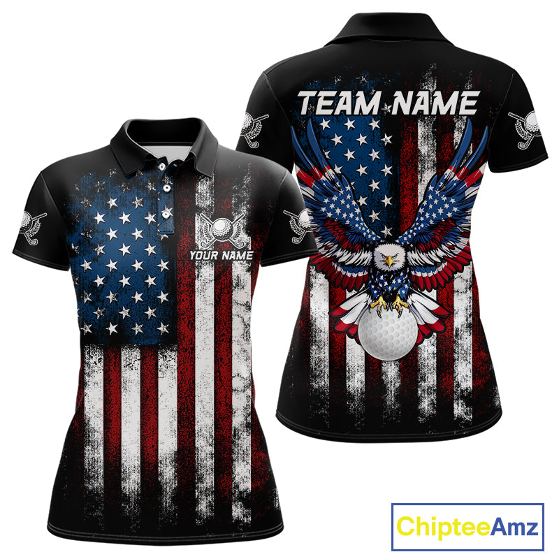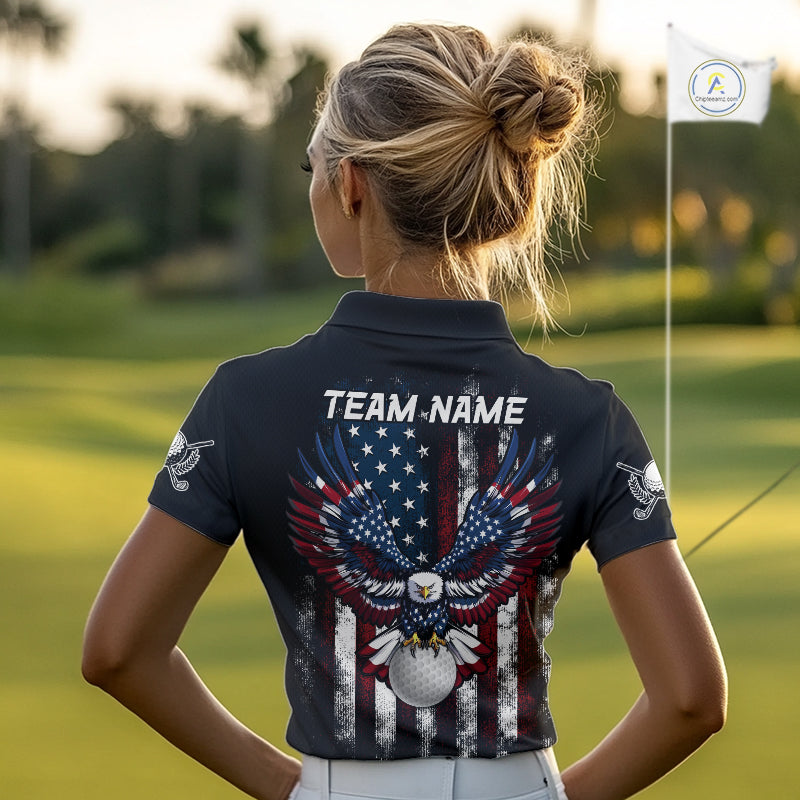 Vintage American Flag Eagle Black Golf Polo Shirts For Women Custom ladies patriotic golf shirts NQS10502