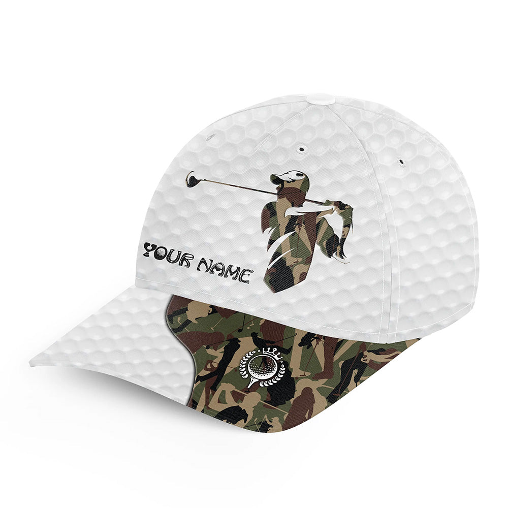 White Golfer hat custom name camo pattern golf hats for mens, gifts for golfers NQS8118