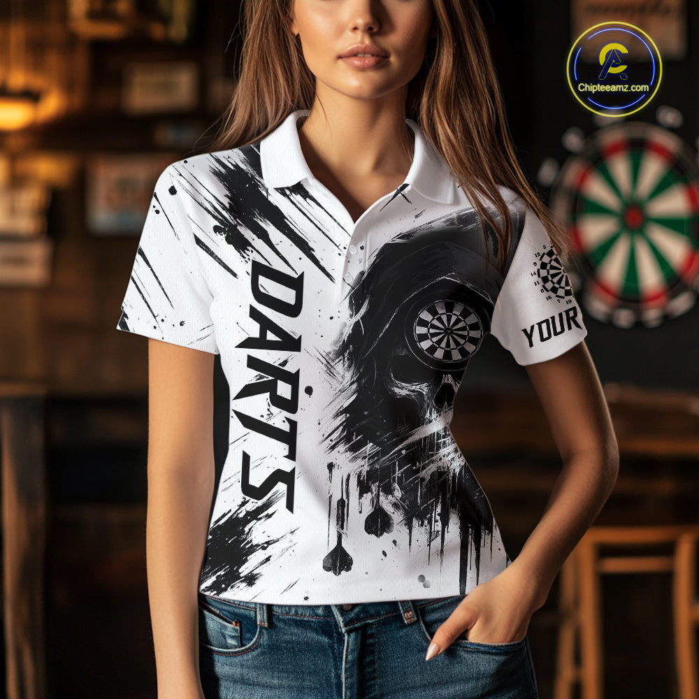 Personalized White Black Grunge Skull Darts Shirt For Women Custom Funny Darts Team Jersey Outfit TDM4908