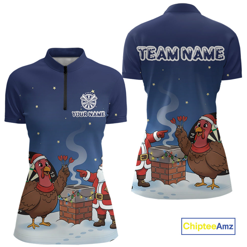 Funny Santa And Turkey Custom Darts Shirt For Women, Christmas Darts Shirt Gift For Darts Lover TDM4912