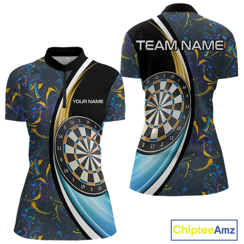 Funny Floral Marbling Pattern Custom Darts Shirt For Women, Team Polo & Quarter Zip Darts Jersey TDM4916