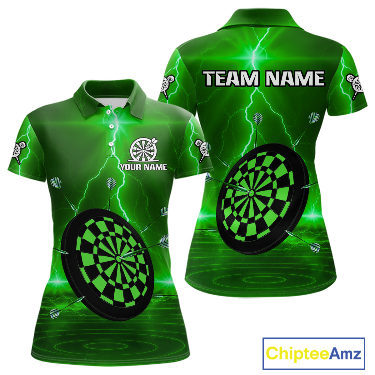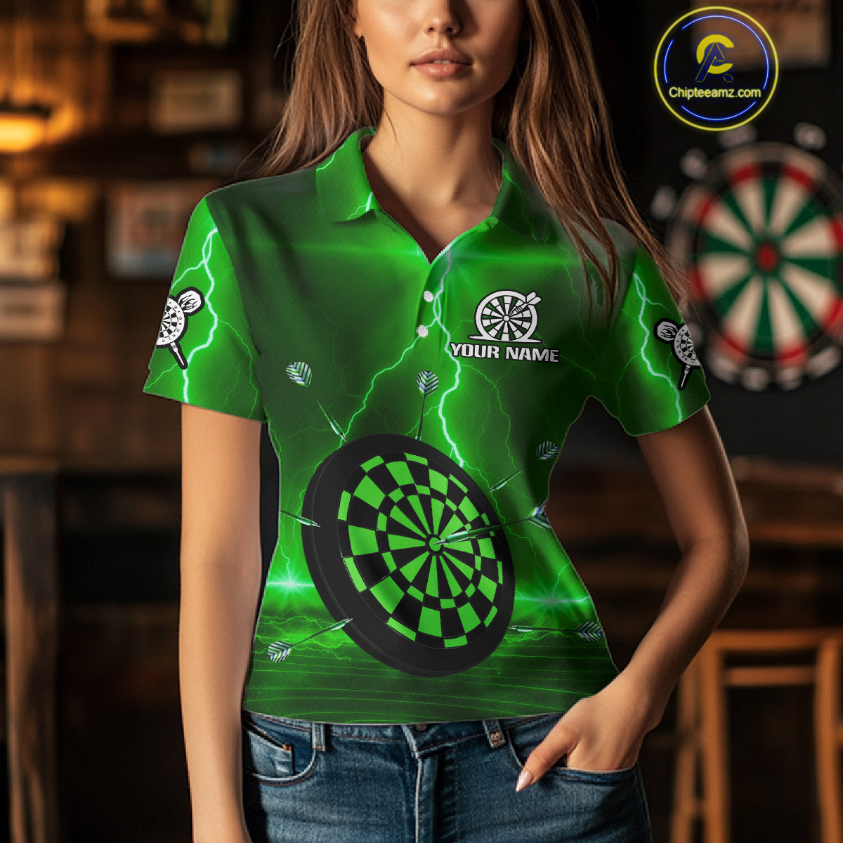 Personalized Dartboard Thunder Lightning Green Darts Shirt For Women Custom Glowing Darts Jersey TDM4921
